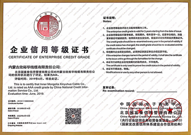 企業信用等級證書